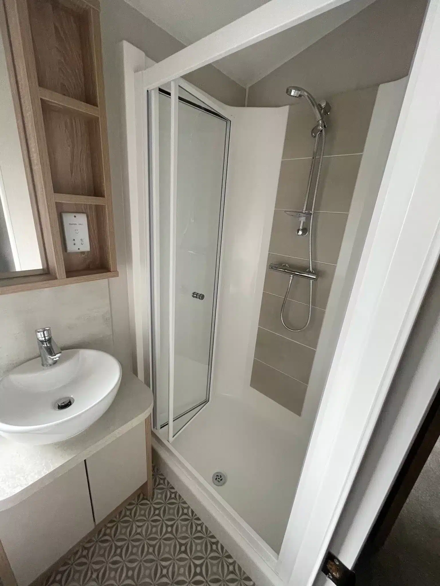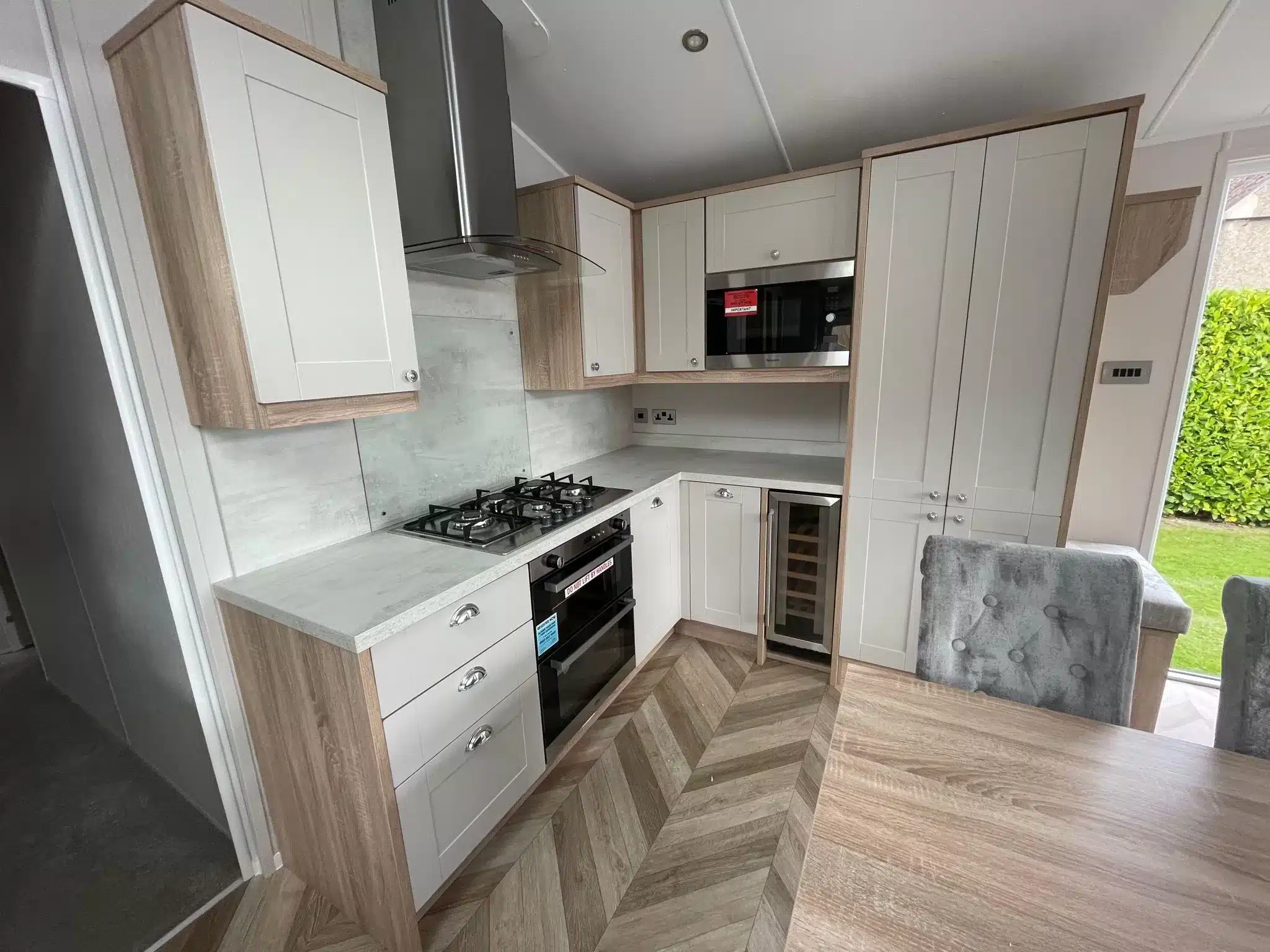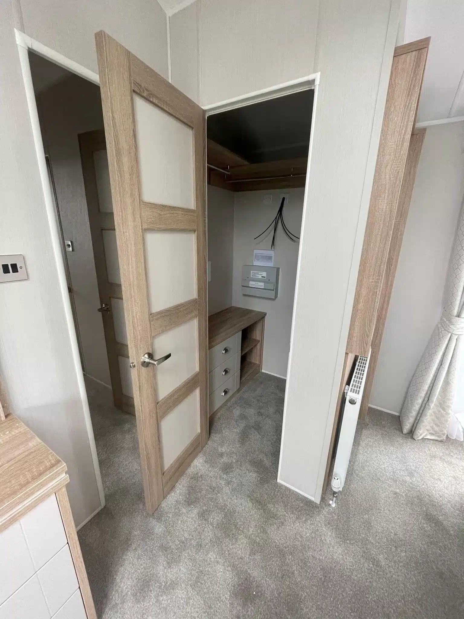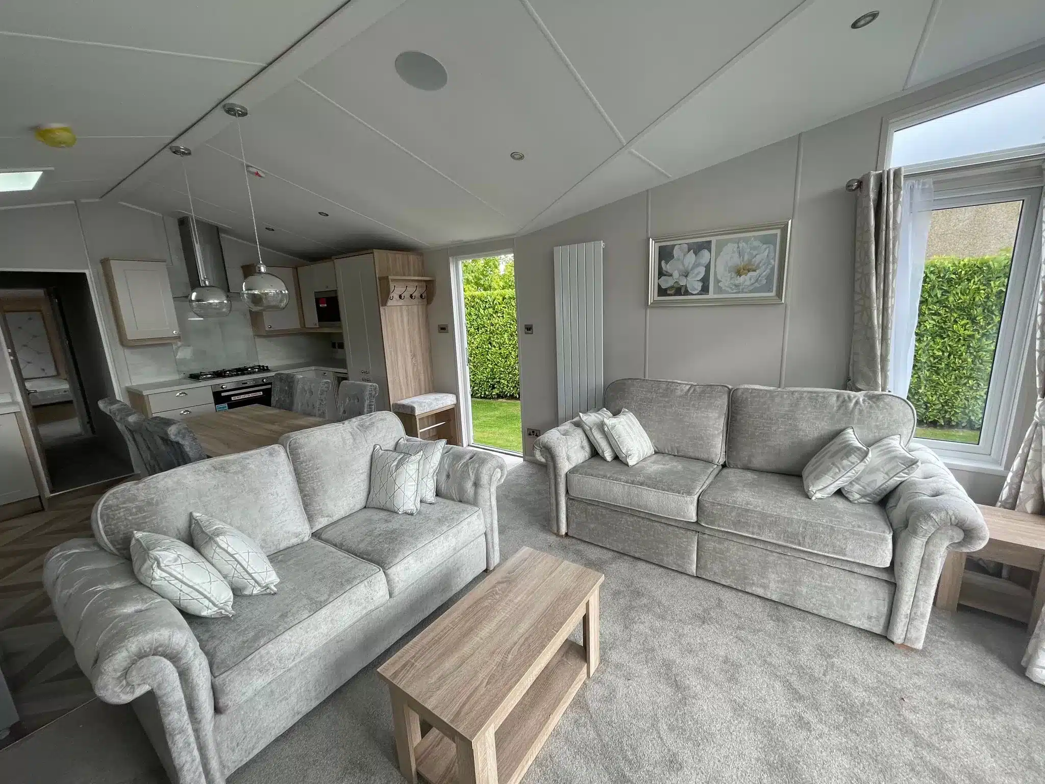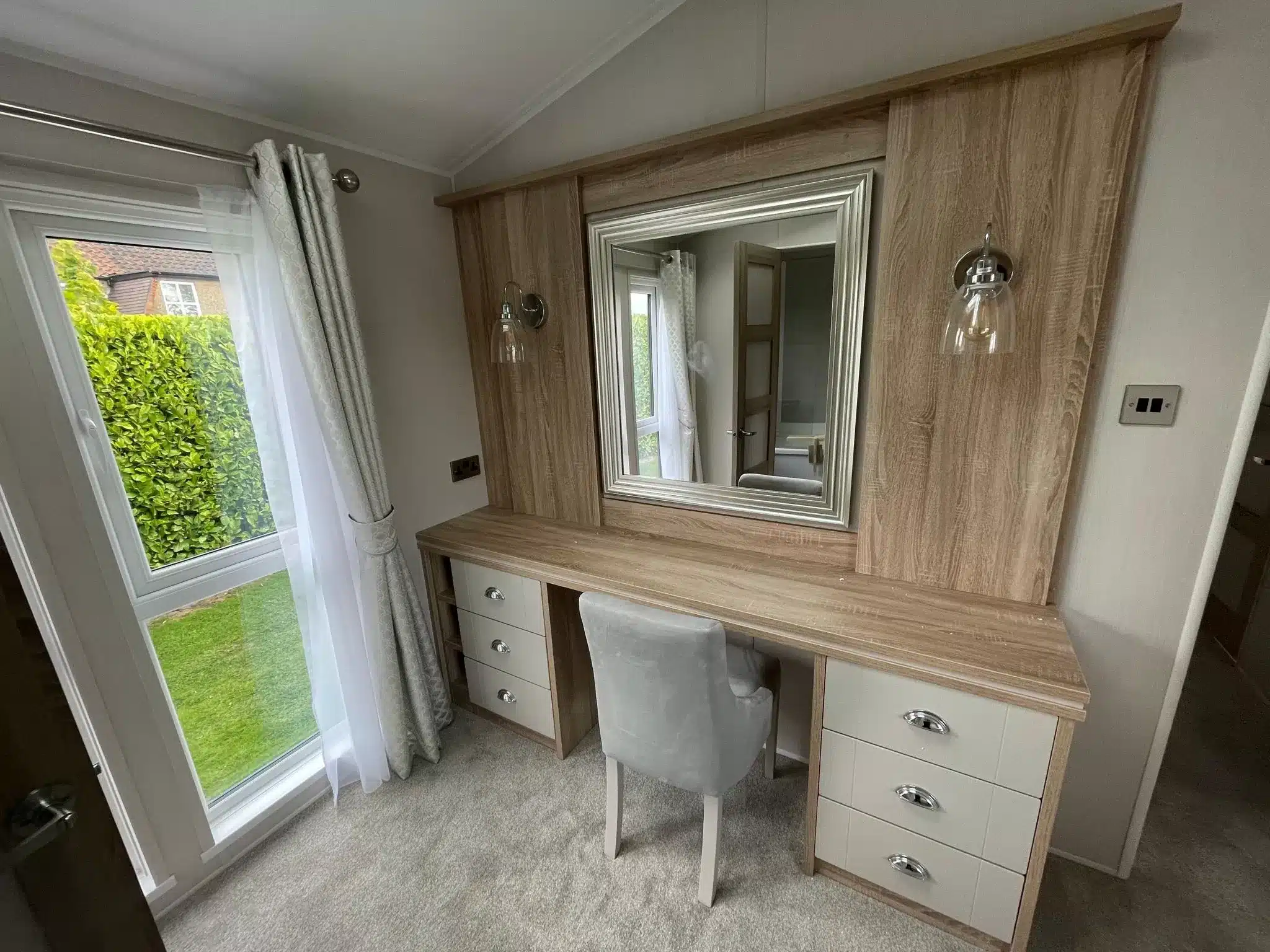 The Stylish Willerby Vogue Classique Lodge is residential spec and comes with central heating and double glazing. The main bedroom benefits from a seperate dressing area and en suite bathroom.