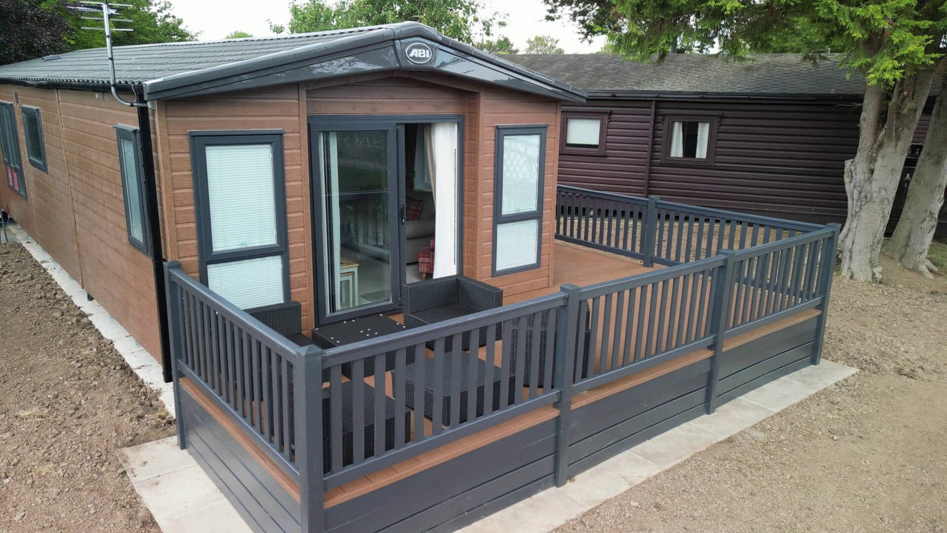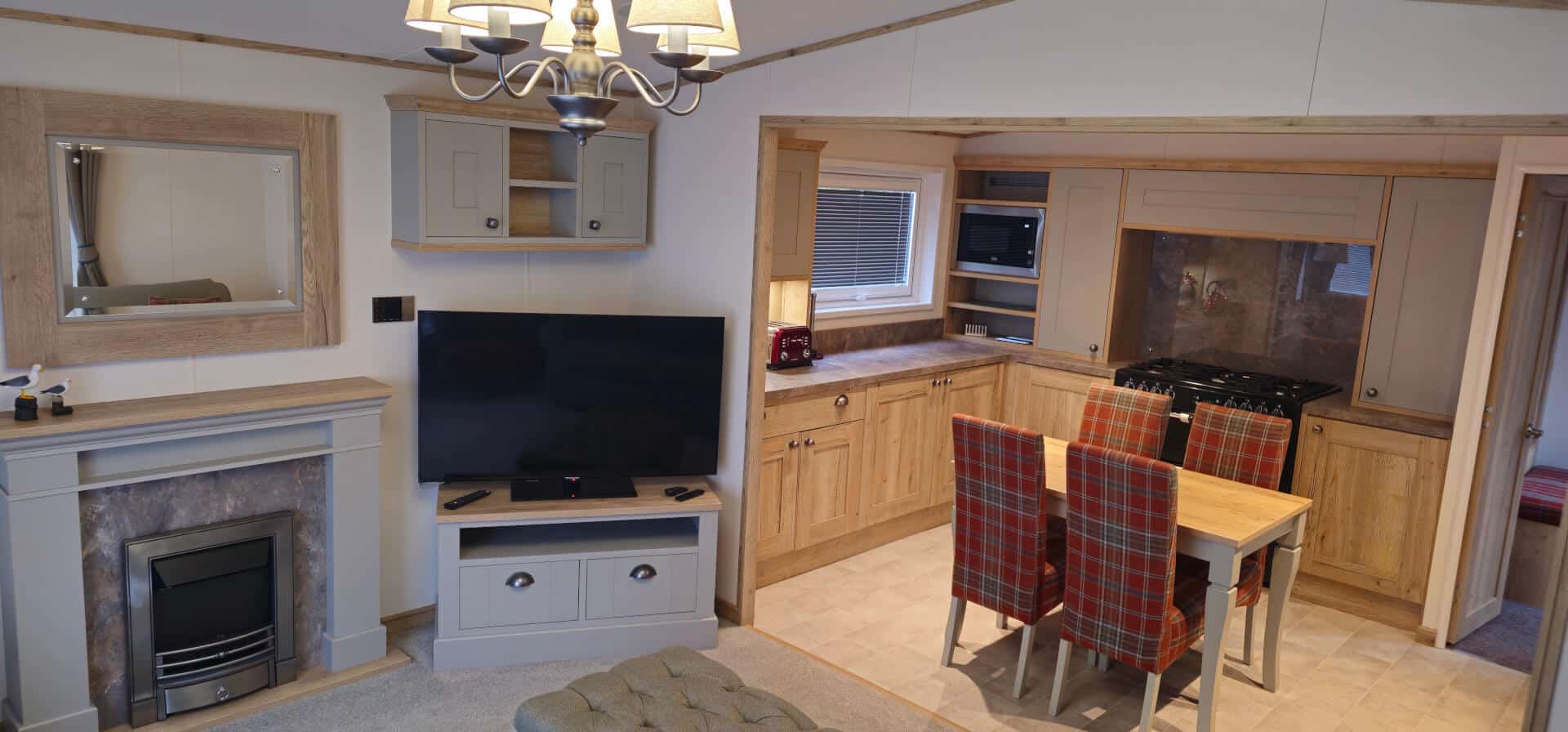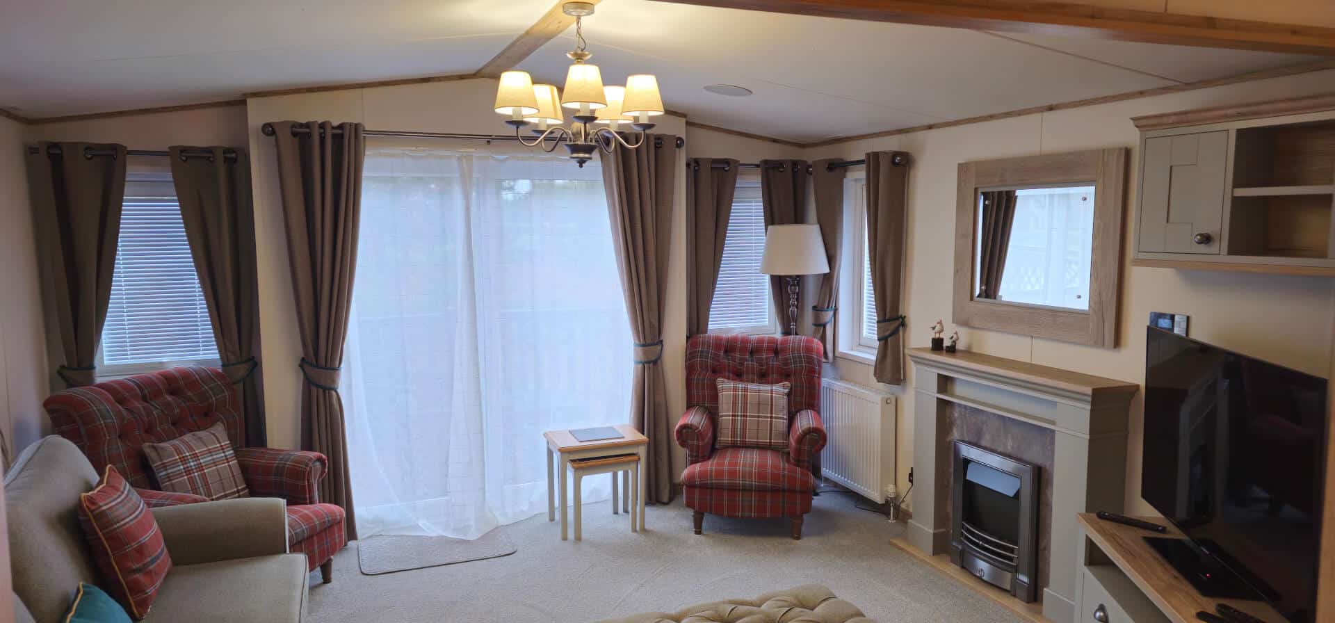 Patio doors lead out on to the furnished decking, overlooking one of our lakes, ideal for summer nights.