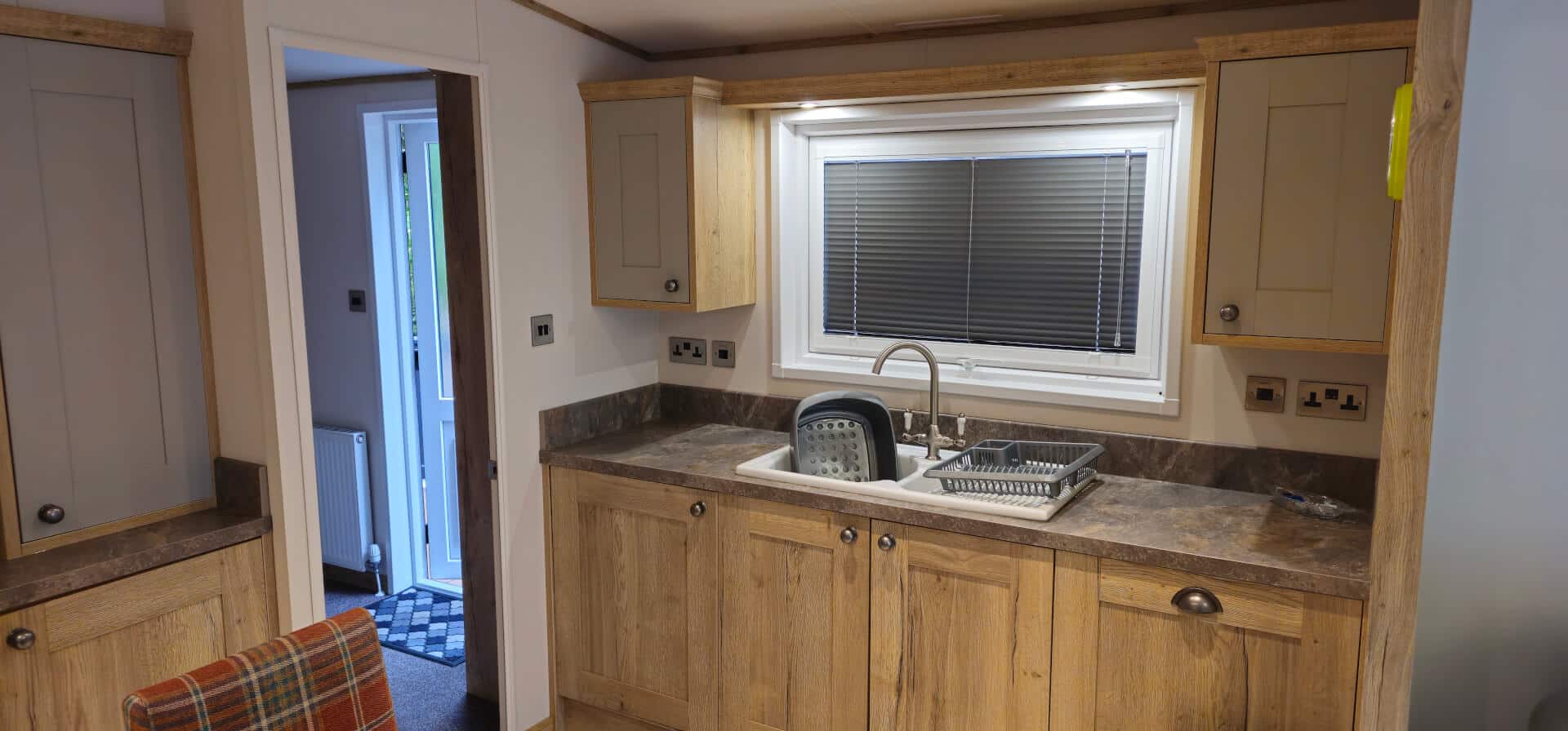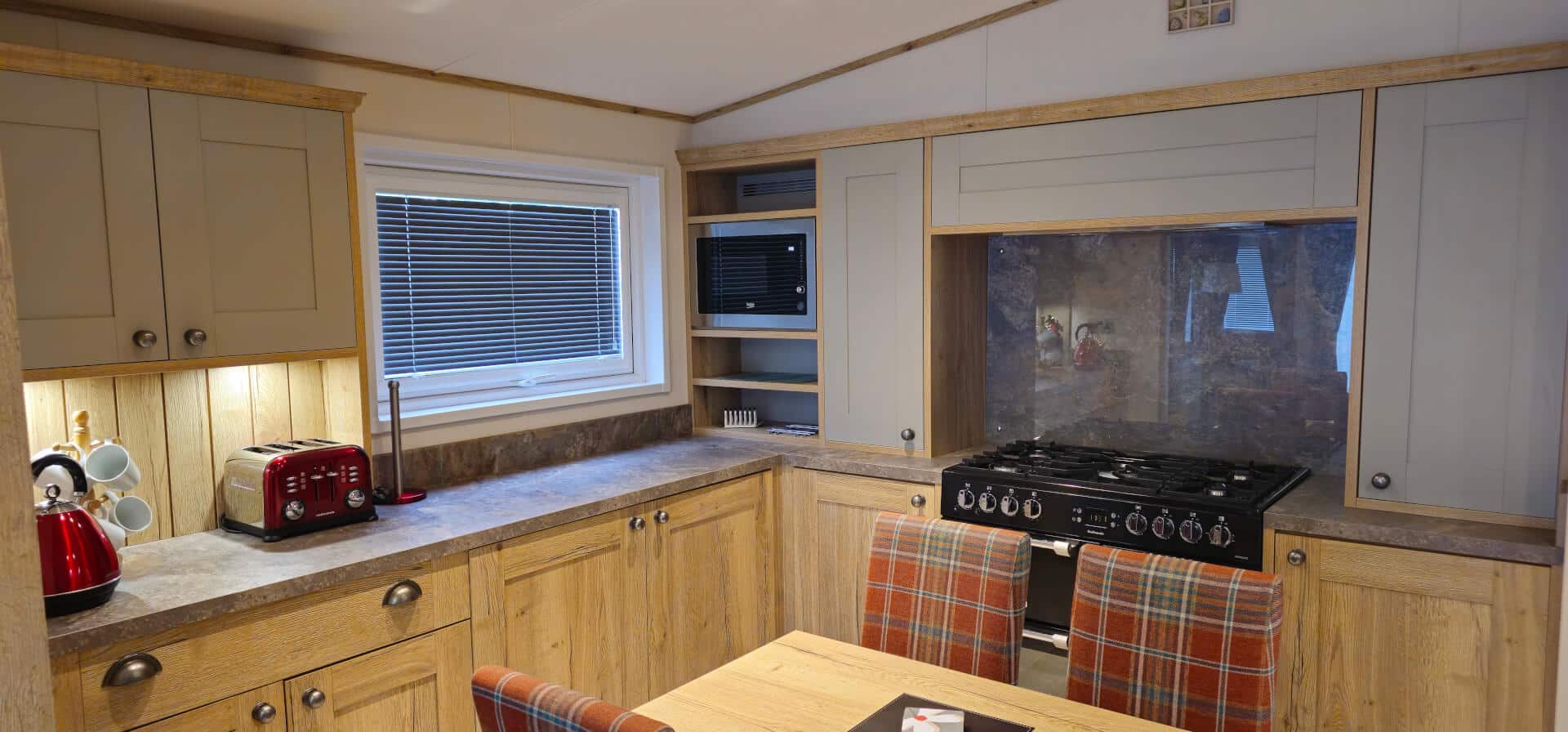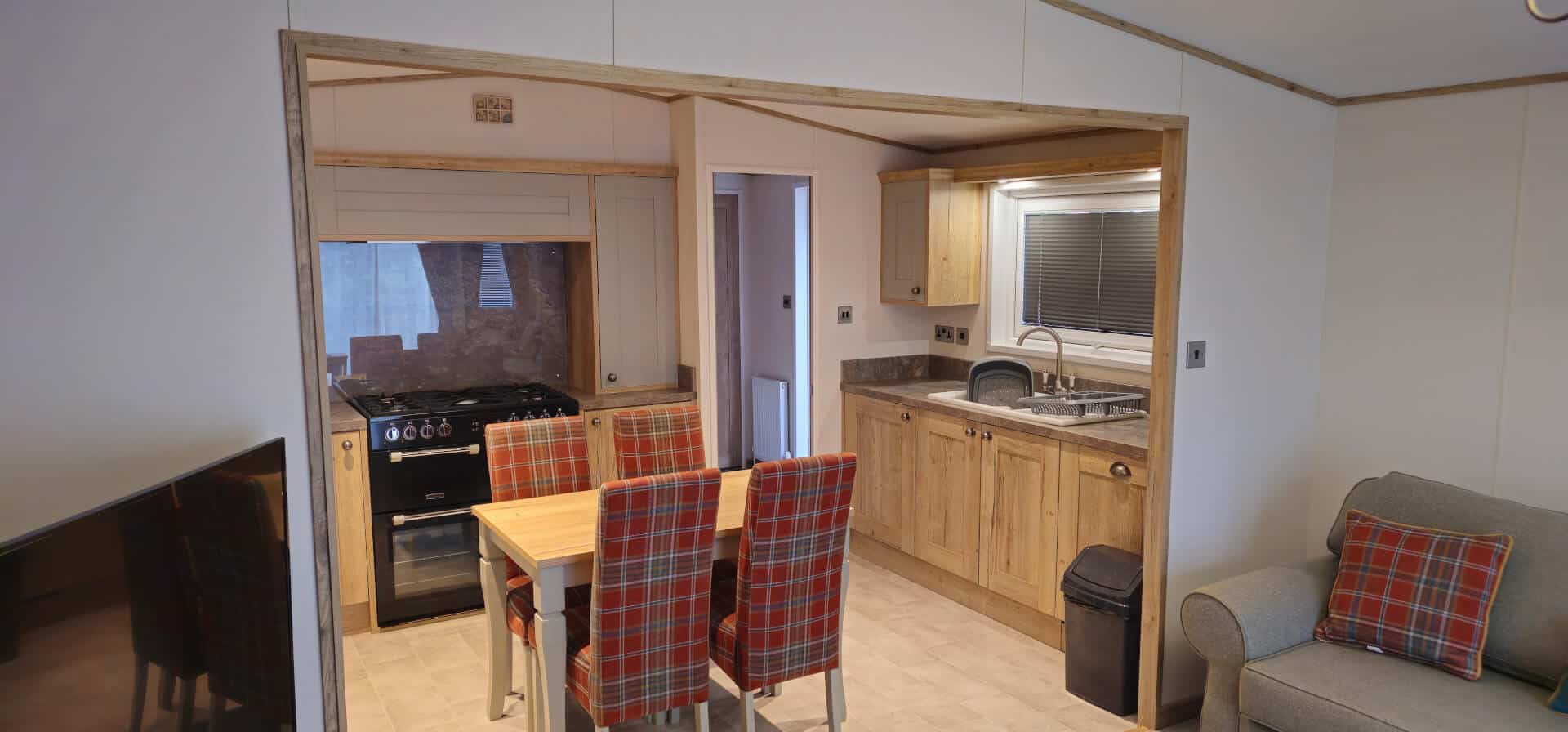 Patio doors lead out on to the furnished decking, overlooking one of our lakes, ideal for summer nights.