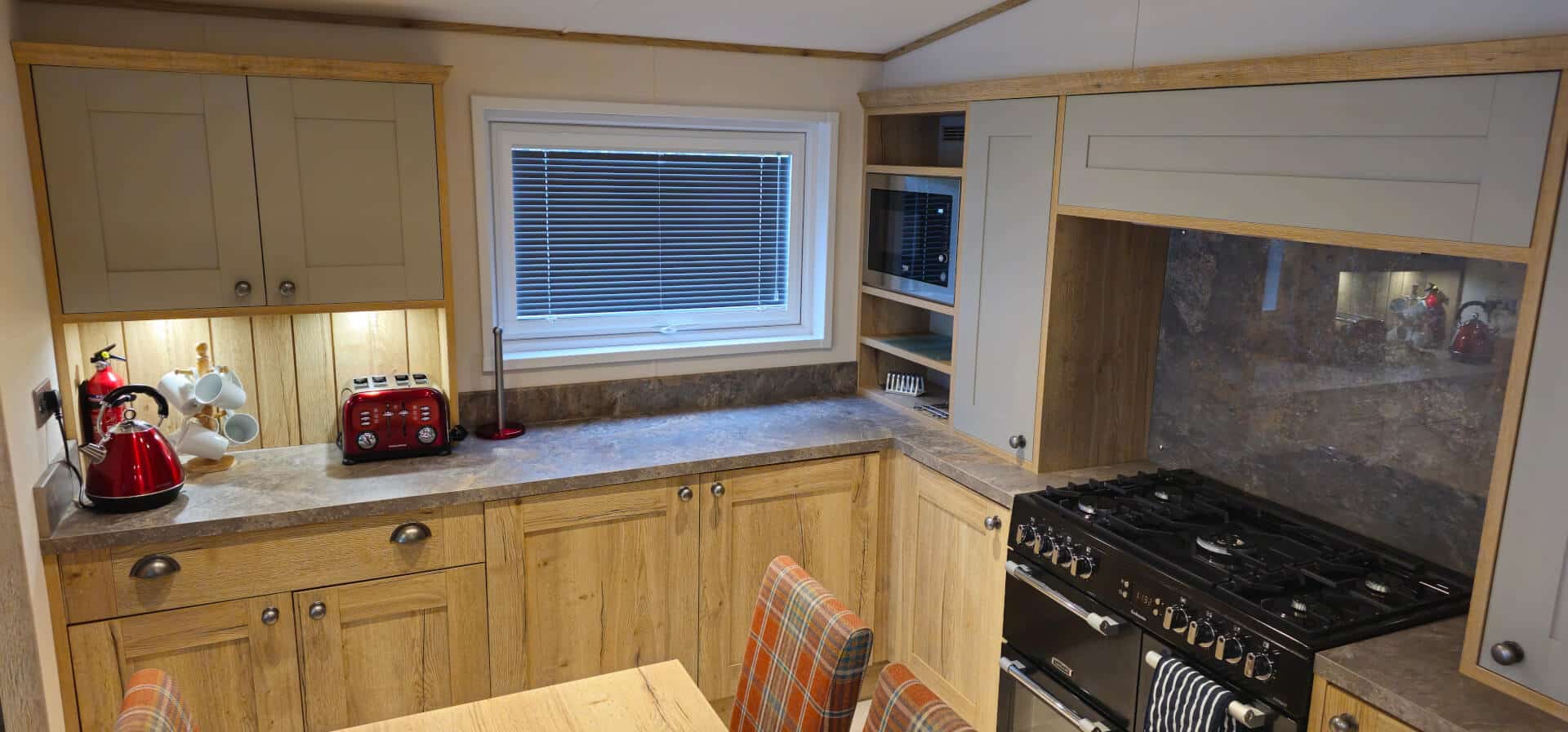 Moorhen Lodge is a luxurious holiday retreat featuring a fully equipped modern kitchen, spacious living areas, comfortable bedrooms, and furnished decking with lakeside views for a relaxing stay.