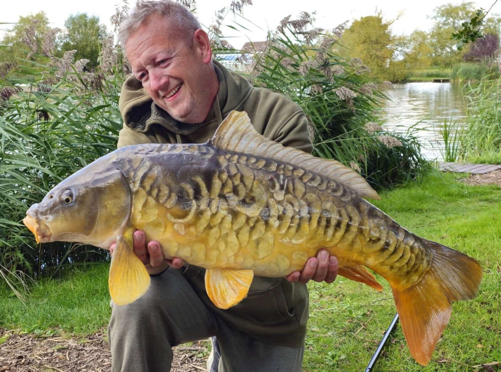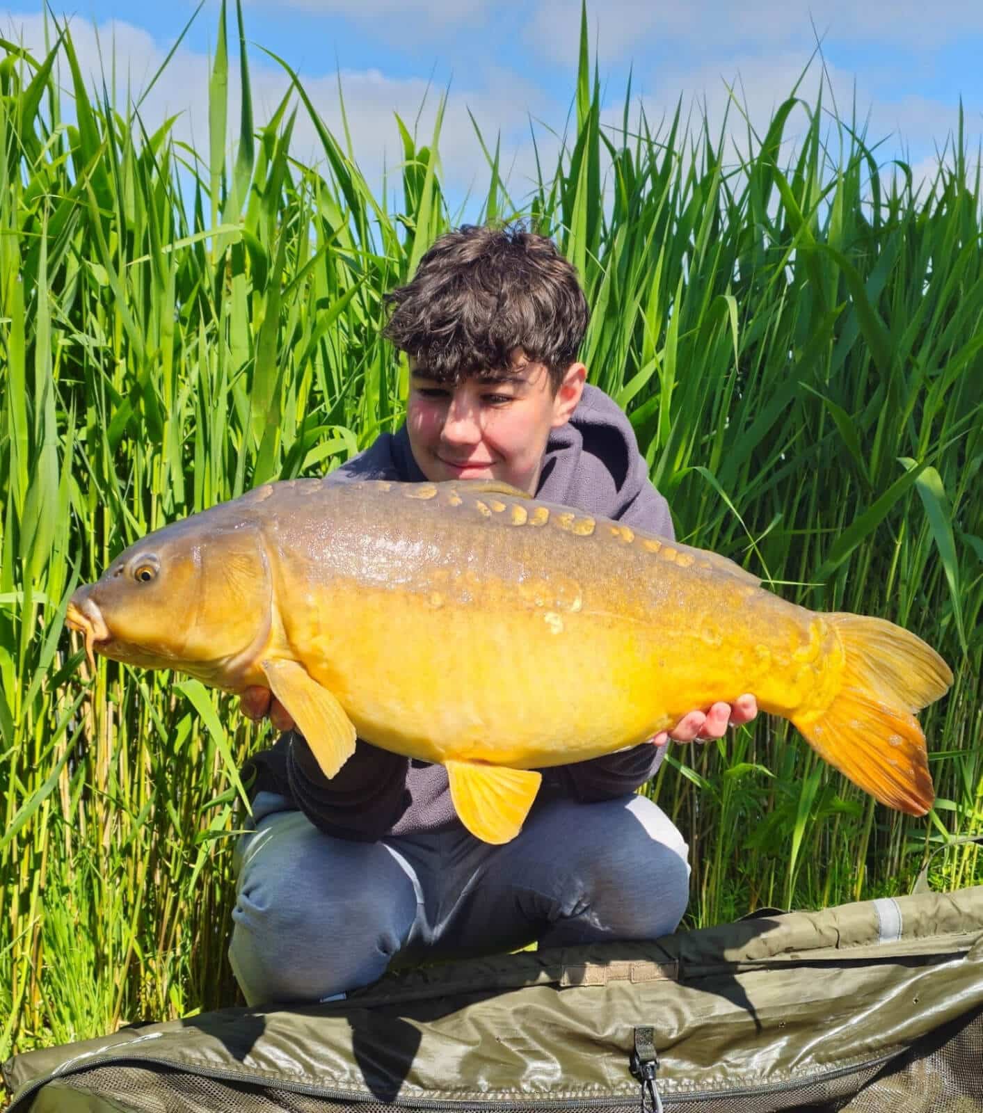 The eastern bank is tree-lined, providing cool shade in the early mornings, though it becomes a sun trap by midday as the sun moves around. The east and south ends of the lake are perfect for those seeking a bit more privacy while they fish. In addition to Carp, the lake is home to healthy stocks of Rudd, Roach, Tench, and Perch. A regular restocking program takes place during the winter months, ensuring the lake remains well-stocked and thriving throughout the year. A feeding program has recently (Spring 2025) been introduced to give the Carp all the protein and nutrients they need to keep them healthy. We feed the Carp on 12mm pellets which can also be purchased in the onsite tackle shop.